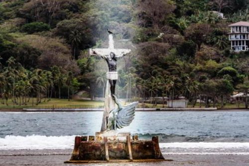 The Black Christ statue rises from the sea off the coast of Isla Grande, also known as Big Island, near Portobelo. Shutterstock/Marek Poplawski